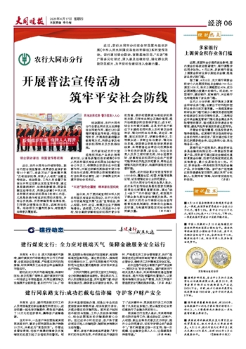 本报讯 4月11日,受大风极端天气影响,建行煤炭支行积极响应市分行工作部署,全面启动应急预案,严格落实防风抗险措施,切实保障员工生命安全和金融服务平稳运行。