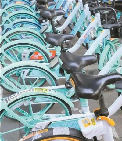 在北京市朝阳区一处地铁站外,约200辆共享单车中超过一半被贴上小广告,有的车身上新、旧广告叠在一起;在安徽合肥一处商业中心街头,几乎每辆共享单车上都有小广告,有的甚至连车轮挡泥板上都被喷涂上“扫码领红包”字样。