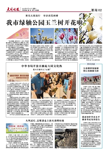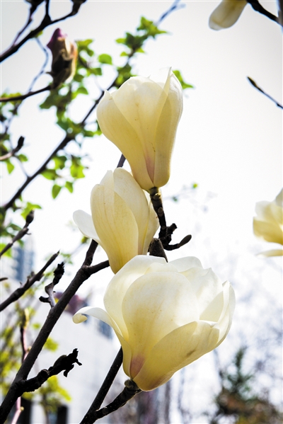 “色白微碧、香味似兰”。近日,市区绿轴公园的玉兰树陆续开花,闲暇之余,市民可与玉兰花来一场浪漫的邂逅,细品明代诗人张茂吴咏玉兰花诗句“但有一枝堪比玉,何须九畹始征兰”的优美意境。