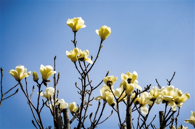 市城市公园服务中心专业技术人员魏晓菲介绍,玉兰喜光、喜肥沃、排水良好而微带酸性的砂质土壤,我市冬季较为寒冷,昼夜温差大,土壤大多呈较碱性,种植玉兰能成活且能开花非常不易,所以需要倍加呵护它的生长过程,如玉兰花虽喜湿润的土壤,但忌栽植地水涝,否则会烂根。栽种前要选择地势偏高的绿地,在雨季来临时还要做好土壤排水工作。玉兰虽比较耐寒,也可以露地越冬,但针对我市的气候特点,做好冬保工作也很关键。玉兰对温度较敏感,愈向南开花愈早,在我市,玉兰的开花时间为每年4月下旬,由于不是同时开花,花期可延续一个月。