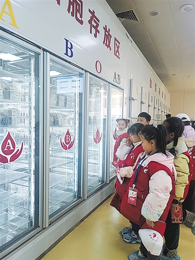 随后,我们参观了血液储存发放、血液检测、成分血液制备等区域。“血液的储存也很有讲究,不同的血液成分保质期和储存条件也各不相同。”在血液储供科,工作人员带我们近距离观察检验合格的血液制品。大家看到,制好的血液制品被分门别类地放在储血冰箱里。而每一袋血液制品上,都清楚地注明了血液成分、血型、采血日期、制备日期、失效日期、贮存条件等。以前,我认为血液就是流动的红色液体。通过工作人员的介绍,让我知道了一份全血里包括红细胞、白细胞、血小板和血浆等成分,正常状态下,血浆通常呈现淡黄色。