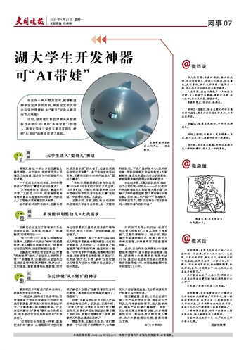 日前,湖南湘江新区深育未来智能科技有限公司(简称“未来智能”)创始人、湖南大学大三学生王蔚及其团队,就把“AI带娃”的想法变成了现实。
