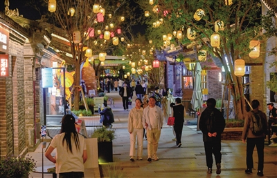 图为24日,游客们夜游东南邑。
