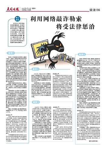 近年来,利用网络制造散播谣言、负面信息进行敲诈勒索的案件时有发生,严重损害人民群众和企事业单位的名誉权、财产权等合法权益。为充分发挥典型案例的震慑、警示、教育作用,近日,最高人民法院发布了依法惩治利用网络敲诈勒索犯罪典型案例。