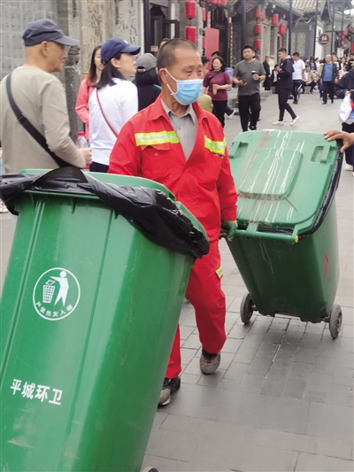 “五一”假期,古城内游人如织。身穿橙色工作服的环卫工人们穿梭在熙攘人群中,手持垃圾夹与垃圾袋,目光敏锐地清理着各类垃圾。以脚步丈量景区,用行动守护一方美景 。
