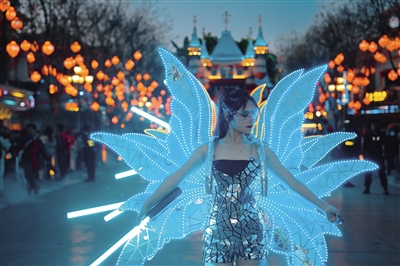 为方便游客,大同方特欢乐世界延长了开放时间。当暮色笼罩园区,一场极具科幻色彩的星际巡游盛大开启。造型各异、灯光璀璨的星际主题花车缓缓前行,身着未来感服饰的“星际使者”、全副武装的“未来战士”在花车上热情舞动,巡游队伍所到之处,欢呼声此起彼伏。