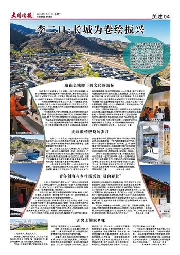 时近正午,餐馆里欢声笑语不断。不少外地游客一边欣赏着李二口村的如画美景,一边品尝着滋味醇厚的农家饭菜,纷纷夸赞:“这里既有罕见的错长城,还有味道正宗的农家美味,这样惬意的旅游体验真是让人流连忘返。” 本报记者 闫昌