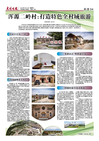 二岭村位于浑源县南榆林乡东北方向,地理位置优越,距离恒山景区仅20公里,村内历史古迹众多,有明代烽火台、清代古树、民国时期关帝庙,还有土窑洞和地道。近年来,二岭村充分发挥历史文化资源优势、浑源全域旅游带“首站”区位优势,整合旅游资源,配套民俗客栈、兴农餐厅,探索集生态、田园、文化、休闲于一体的特色山村发展模式,推动实现全村域旅游。