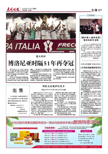 新华社罗马5月14日电 意大利杯14日迎来决赛,博洛尼亚在罗马的奥林匹克球场1∶0力克AC米兰,时隔51年第三次捧起意大利杯冠军奖杯,恩多耶打入制胜一球。