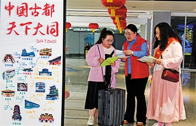 本报讯 (记者 双红) 16日上午,大同日报社晚报党支部与市公交公司七分公司党支部开展支部联建活动,在大同综合客运中心为游客提供志愿服务,传递大同温度,助力文旅发展。