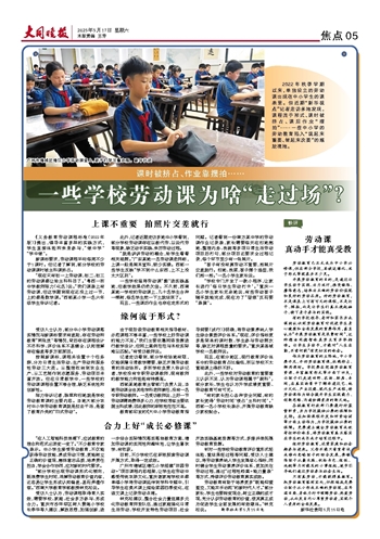 劳动教育已正式成为中小学必修课,但在部分学校,其被边缘化、流于形式等现象并不少见。