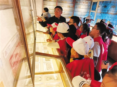 进入展厅,琳琅满目的钱币让我大开眼界。展柜里陈列着从古代到现代的各类钱币,包括贝币、铜钱、银两、纸币等。“这些钱币不仅展示了货币形态的变化,还反映了不同历史时期的经济和社会发展状况。”馆长韩英带领我们近距离欣赏了中国历代珍贵的钱币文物,并对每一枚钱币的文字、图案以及背后故事进行了介绍,大家从中感受到传统工艺的奇妙和古老钱币的历史价值。