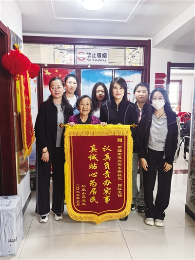 本报讯 (记者 尚丽) 近日,平城区环泉小区居民手捧一面绣有“认真负责办实事 真诚贴心为居民”的鲜红锦旗,送到向阳东街社区工作人员手中,感谢社区为他们解决了难题。