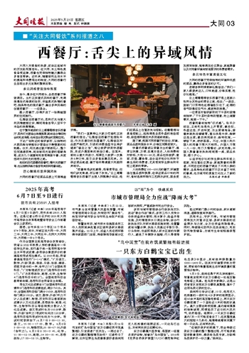 如今,漫步在大同街头,各类西餐厅琳琅满目。主打正宗意式风味的餐厅、充满浪漫法式格调的场所、洋溢美式热情的餐吧、独具特色的俄式餐厅、融合多种风格的创意西餐厅……一应俱全。