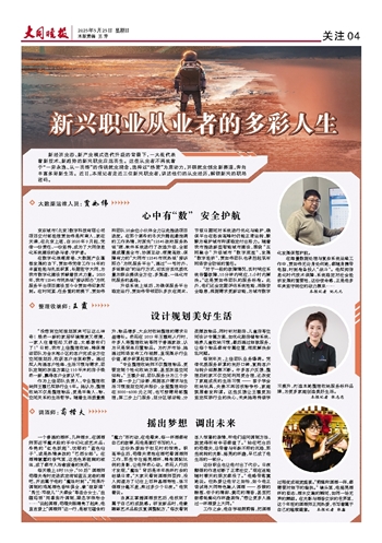 新经济业态、新产业模式迭代升级的背景下,一大批代表着新技术、新趋势的新兴职业应运而生。这些从业者不再执着于“一劳永逸、从一而终”的传统就业观念,选择以“热爱”为原动力,开辟就业创业新赛道,奔向丰富多彩新生活。近日,本报记者走近三位新兴职业者,讲述他们的从业经历,解锁新兴的职场密码。