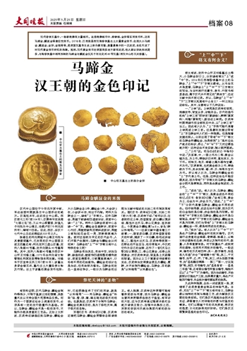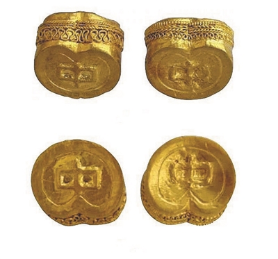 汉代诸侯王墓中,一般都陪葬有大量钱币。这些陪葬钱币中,除铜钱、金饼等实用货币外,还有马蹄金、麟趾金等象征性货币。2016年,江西南昌西汉海昏侯墓出土大量黄金货币,包括大小马蹄金、麟趾金、金饼、金版等等,是我国汉墓考古史上保存最完整、数量最集中的一次发现,由此引发了对汉代黄金货币研究的热潮。虽然,汉代黄金货币在我国很多地方都有发现,但大都以饼块形状居多,与海昏侯墓中相同形制的马蹄金与麟趾金仅见于河北定州40号汉墓(西汉中山怀王刘修墓)。