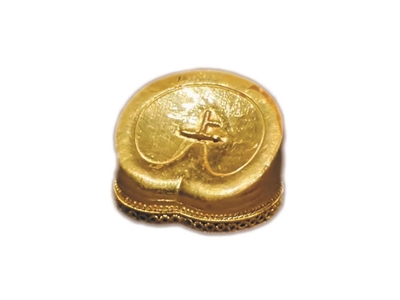 凡此种种推测,各执一词或莫衷一是,更增添了此类贵重黄金制品的神秘气息。当然,无论“上”“中”“下”铭文有何含义,马蹄金都以独特的形制与精湛工艺,成为解读汉王朝的珍贵密码。它们是汉代高超冶金技术的实证,承载着古人对祥瑞的祈愿与对皇权的尊崇。它们以跨越千年的优良质地,将历史的温度、文化的脉络完好封存。它们是汉王朝繁荣昌盛的金色印记。