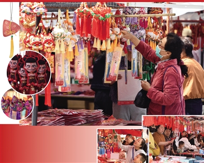 端午节临近,节日氛围渐浓。东信小商品城内,五彩绳、手链等传统端午饰品销量攀升,其中造型别致的粽子香囊和国风香囊因寓意吉祥,成为消费者追捧的“爆款”。 本报记者 于宏 摄