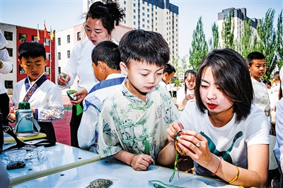 ▶ 29日,平城区23校五洲分校开展端午节主题活动。活动现场,在老师与家长的悉心指导下,学生们动手实践,体验包粽子的乐趣,精心编织五彩绳,制作端午香囊、团扇等手工艺品,沉浸式体验端午习俗,深入了解节日文化内涵。此次活动不仅丰富了校园生活,更激发了学生们的民族自豪感。