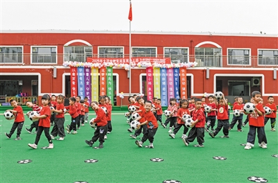 图为足球操表演。