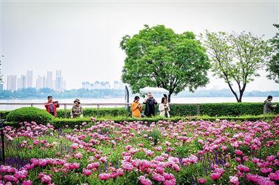 在我市,文瀛湖风景区的芍药花种植面积最大,约8000平方米,主要集中种植在毗邻文瀛湖畔的太阳广场北侧。记者漫步花海,目之所及皆是温柔的粉色芍药,层层叠叠的花瓣在阳光下舒展,微风拂过,浓郁的花香沁人心脾,众多市民游客在这里赏景、拍照、写生,亲近自然、放飞自我。