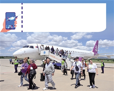 该航线每周执飞两班,班期为周二、周六,具体航班时刻为:乌兰巴托至大同 MR855航班11∶00起飞,12∶40抵达;大同至乌兰巴托MR856航班13∶40起飞,15∶30抵达,单程飞行时间均约2个小时,显著缩短了两地时空距离。