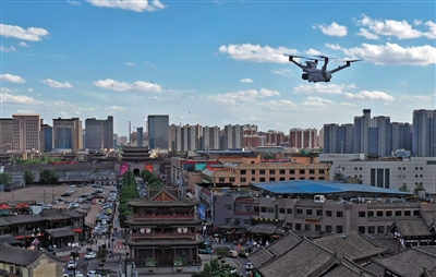6月2日,在古色古香的街巷间,市城市管理综合行政执法支队无人机中队的队员们正熟练操作设备。随着螺旋桨的嗡鸣声,一架无人机腾空而起,开始执行巡查任务。这是城市管理局推出的新型执法模式,在鼓楼东西街、东南邑等重点区域,无人机凭借高空视野和灵活机动的优势,突破传统人力巡查的时空限制,对市容环境进行全方位监测。