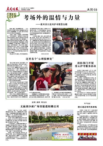 一场考试,牵动一城人;爱心助考,温暖一座城。考点外,除了考生和家长,还有许多为高考护航的各行各业工作人员。交警指挥交通,确保考生顺利到达考场;爱心送考的出租车司机免费将考生和家长送达考场,还送上祝福;环卫工人穿梭人群,保持考场及周边环境整洁;志愿者为家长提供休息区,免费发放矿泉水、小扇子,缓解家长的紧张情绪。这些看似微不足道的举动在高考这个特殊日子里显得格外重要,为考生提供便利,传递社会温情与关爱。