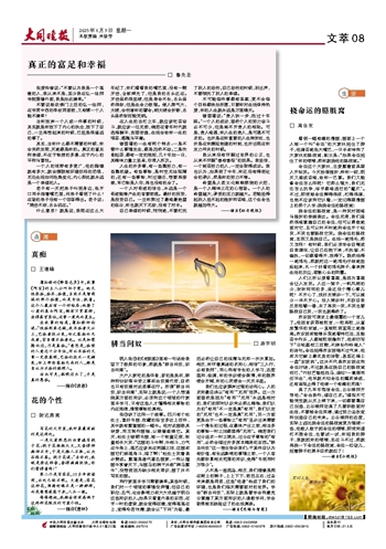 挠命运的胳肢窝,是一种笑对困难与挫折的委婉表达。命运无常,我们虽然很难掌握自己的命运,但可以勇敢地面对它,且可以时不时地和命运开个玩笑,不笑也要胳肢它笑。挠命运的胳肢窝,实则又是挠自己。生活一地鸡毛,那又怎样?有时候,我们必须学会自嘲或自我调侃,让自己松弛下来,不执拗、不偏执,一切都看得开、放得下。既然活得一地鸡毛,那就把这一地鸡毛仔细地捡拾起来,扎一个好看的鸡毛掸子,拿来掸生活的灰尘,驱散心头的阴霾。