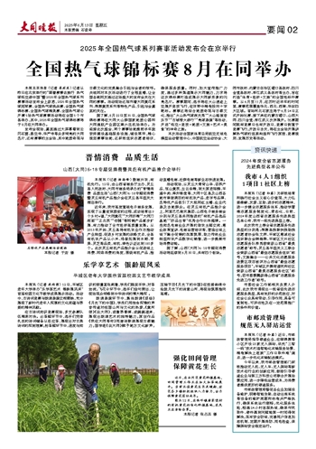 本报北京消息 (记者 崔莉英) 记者从昨日在北京举行的“跟着赛事去旅行 热气球低空游中国”暨2025年全国热气球系列赛事活动发布会上获悉,2025年全国热气球冠军赛、全国热气球挑战赛、全国热气球锦标赛、全国热气球精英赛、全国热气球公开赛5场热气球赛事活动将在全国5个市县举办,其中,2025年全国热气球锦标赛将于8月在大同举办。