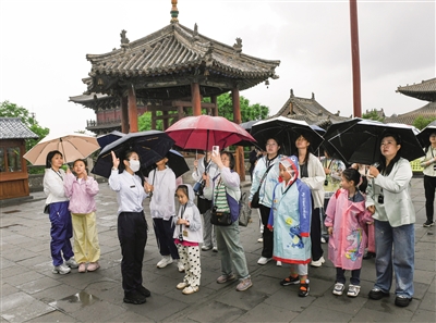 本报讯 (记者 史涌涛) 14日,华严寺景区内开启了一场别开生面的“千年壁语·匠心传承”主题活动,带游客探秘千年古韵,守护文化瑰宝。