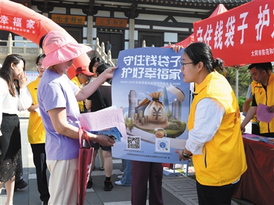 本报讯 (记者 辛雅君) 6月15日,2025年大同市防范非法金融活动宣传月启动。首场“集中宣传日”活动当日8时30分在明堂公园南广场举办,活动以“守住钱袋子·护好幸福家”为主题,拉开全国首个防范非法金融活动宣传月的序幕。