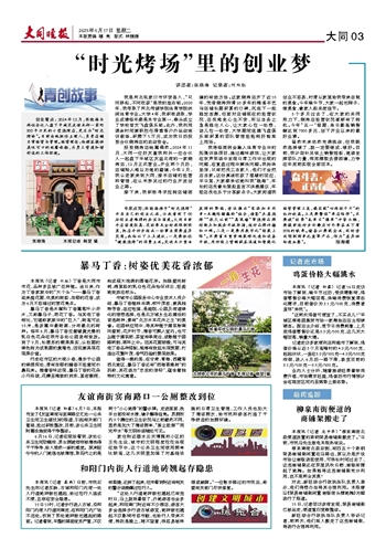 创业看点: 2024年12月,张晓海与两位合伙人盘下平城区友谊北街一家约300平方米的小型烧烤店,更名为“时光烤场”。目前由他担任主理人,负责店铺日常经营与管理。经营理念:给顾客提供美味可口的就餐体验,为员工营造和谐舒适的工作环境。
