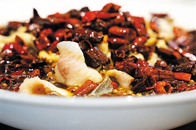 在禧舍·川小馆,首当其冲的必点菜品非水煮鱼莫属。小店在制作这道菜时多年来一直选用活鱼,草鱼、江团鱼、青鱼等。食材的新鲜是保证菜品的第一要义。活鱼宰杀清洗干净后,将鱼肉片成约3毫米、薄厚均匀的鱼片,用盐、料酒、蛋清和淀粉腌制,黄豆芽是必不可少的配菜。在厨师的一番操作下,最后随着滚烫的热油浇在码放整齐的鱼片上,在“刺啦”一声中美味即成。当这道菜端上桌的那一刻,视觉与嗅觉的双重冲击让人瞬间食欲大增。赤红的辣椒与油亮的花椒漂浮在表面,雪白的鱼片若隐若现,翠绿的香菜、葱花点缀其间,宛如一幅色彩斑斓的画卷。夹起一片鱼片,入口瞬间,嫩滑的鱼肉带着麻辣鲜香在舌尖散开,麻意先声夺人,辣味紧随其后,却又不会掩盖鱼肉本身的鲜美。豆芽的清甜与鱼肉的鲜嫩相互交融,每一口都让人陶醉在麻辣鲜香的世界里。