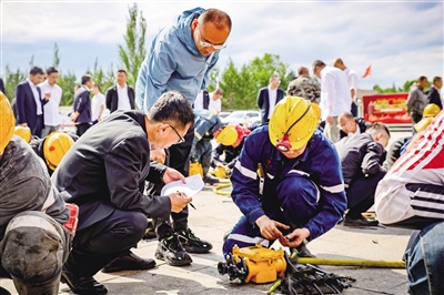 近日,同发东周窑煤业公司开展2025年“安全宣传咨询日”活动。其中,技能竞赛设自救器盲戴、钢丝绳绳扣插编、设备接线、凿岩机维修四个项目,不仅为职工搭建了技能展示平台,还切实提升了煤矿安全生产技术水平。