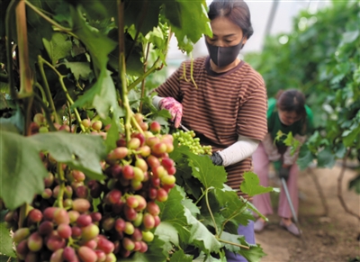 对于今年的收成,李亚鹏充满期待:“过去一亩地产量仅千斤,如今通过技术改良,亩产有望突破一万斤。从7月到12月,不同品种将陆续成熟。”他还表示,基地计划对接高端市场,并带动周边农户发展有机种植,让“代庄葡萄”成为乡亲们的致富果。 本报记者 辛雅君
