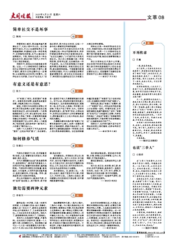 独处需要两种元素:一是内心强大,二是内心丰富。内心强大是指对他人没有依赖性,能够独立支撑,无论是在物质上还是精神上,像一棵独立支撑的大树,而不像绕树的春藤;像独立完满的人,而不像依人的小鸟。内心丰富是指不会真到达无所事事穷极无聊的地步,总是有写作的动力,有读书的渴求,有观影的兴致,对美有永不餍足的爱好和追求。只有这样,才能只是感到时间不敷使用,而不会感到无聊。