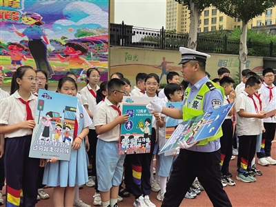 本报讯 (记者 刘剑) 为增强暑期少年儿童交通安全意识,26日,由省公安厅交通管理局指导,市公安局交通管理支队主办的“交通安全进校园 守护暑期平安路”交通安全主题宣传活动在平城区23校五洲分校举办。