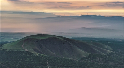 近日,大同降雨频繁,清晨的大同火山地质公园被雾气轻轻笼罩,宛如一幅流动的水墨丹青。青山苍翠,古寺朦胧,在云雾中若隐若现,完美再现了《水经注》中“滴翠流霞,川原欲媚”的唯美意境。