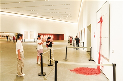 展出现场,一件件作品依次陈列,包括抽象作品、材料艺术、女性表现艺术以及装置等。其中,作品《存在》系列,借用时间痕迹的棉布,以简单的形式和色彩构成的画面,表达对生命的体验和反思过程;《无序点云》系列作品通过普通的红色棉线作为连接内在与外在世界的材料,使人和作品之间形成不同的物理和心理上的距离,从而产生一种互动关系;《门与记忆》系列作品,则通过每一道裂痕、每一处斑驳,让人们感受到岁月的沉淀和生命的坚韧。