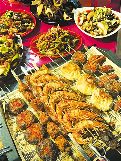 除了小龙虾泡面筒,老厂房大串的各种烤串同样“大”有来头。牛肉串选用新鲜的牛后腿肉,每一串都有成年人手指粗细,肉块厚实,炭火烤制后外焦里嫩,香味四溢;除此之外,羊肉串、鸡翅、鱿鱼须、烤生蚝……每一串都分量十足,诚意满满。无论是肉食爱好者,还是海鲜控,都能在这里找到味蕾的满足。