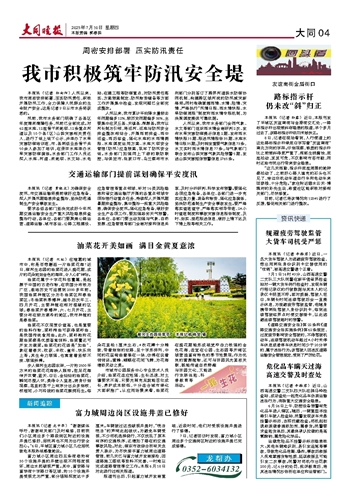 入汛以来,我市累计平均降水量较去年同期偏多12%,较历史同期偏多38%,主要集中在灵丘县、天镇县、浑源县。我市以河长制为引领,将巡河、巡库与防汛安全排查整改相结合,开展雨前排查、雨中巡查、雨后核查,强化水库的水雨情测报、水库调度运用方案、水库大坝安全管理(防汛)应急预案,筑牢了防汛安全线。水务部门加强同上下游的联防联控,与保定市、张家口市、乌兰察布市水利部门分别签订了跨界河道洪水防御协同机制,构建跨区域河流的防汛减灾新格局。同时准确掌握雨情、水情、险情、灾情,严格执行“汛情日报、雨水情快报、水旱防御周报”制度和雨水情专报机制,为决策调度提供可靠依据。