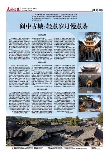 在古城附近入住后,便迫不及待地进了古城。阆中这座有着2300年历史的古城,其深厚的历史底蕴,便是一张实实在在的金字招牌,如今,这里已是国家5A级旅游景区。无需导游,也无需地图,打开手机导航,便开始闲庭信步起来。其实,个人感觉游览古城不必那么正式,完全可以遵从个人的兴趣和爱好,随心所欲,信马由缰,想走便走,想停便停。果然不出所料,进入古城不久,我们一行十余人便寻着各自的兴趣点,消失在了棋盘似的街巷之中。