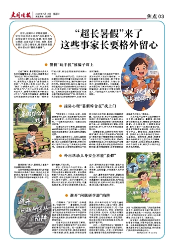 记者在采访中了解到,暑假期间脱离校园规律的学习生活节奏,一些孩子社交活动显著减少,容易过度沉迷虚拟世界。