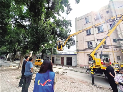 发现隐患后,网格员第一时间向大齿社区上报情况。社区迅速联动相关部门,专业工人抵达现场开展紧急处理。经过一个小时的作业,成功排除了危险。