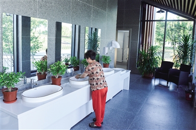 除了独特的园林设计,两座公厕均设置第三卫生间,配备扶手等设施,方便老人、残障人士及亲子家庭使用;入口设有无障碍通道,冬季将加装门斗保暖。目前,洗手台已配备洗手液、干手器,后续还计划增设共享充电宝等便民设施。保洁人员随时维护,确保洗手台、镜面等区域整洁。“本来只是着急找个厕所,没想到像进了小花园,干干净净的,看着心里就舒服!”带孙子来游玩的市民张阿姨说。