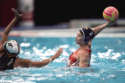 中国队在交叉赛中遭遇世界排名第七的意大利队,双方一开场就开始在水中“肉搏”,比拼防守。第一节中国队以0∶2落后。次节中国队逐渐找到进攻节奏,由王诗蕴率先破门,此后双方你来我往,交替得分。张育绵、周尚、张玘铄的进球帮助中国队紧咬比分,半场结束中国队5∶6落后。