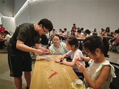 本报讯 (记者 王春艳) 7月20日,“镂月裁云 纸艺生辉”——剪纸技艺体验活动在市美术馆举行,众多市民齐聚艺术殿堂,感受传统文化所承载的生活美学和独特魅力。