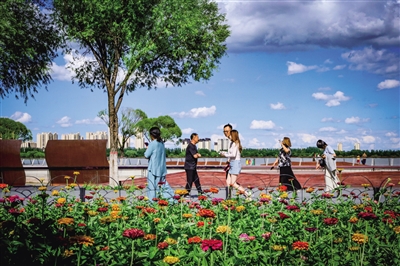 本报讯 (记者 双红) 春季播种,夏季就会收获一片绚丽缤纷的花海,虽是一年生草本植物,但其丰富的花色、超长的花期和顽强的生命力,总能给人带来蓬勃热烈的治愈感,它便是百日草。连日来,我市各大公园的百日草进入盛花期,置身花海,令人陶醉。