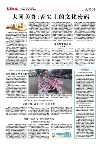 当清晨的第一缕阳光洒在大同古城墙上,街边的饭店早已飘出诱人的香味。操着各地口音的游客围坐在桌前,刀削面、烧麦、粉羊杂……各种特色美食编织着这座城市的味觉记忆。